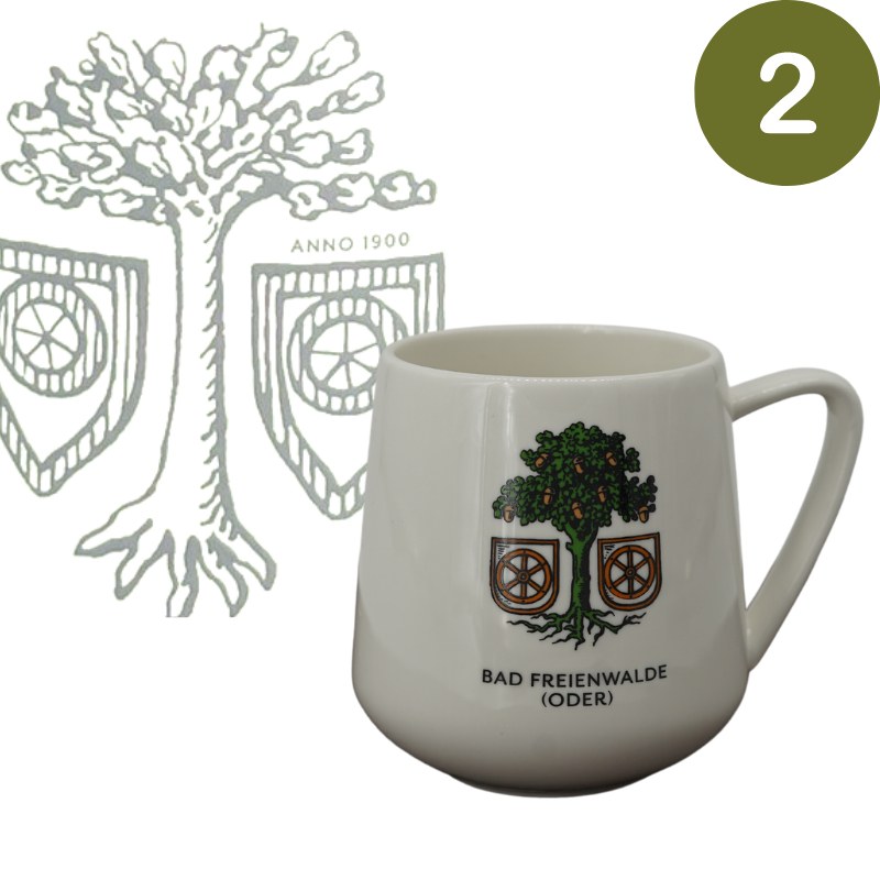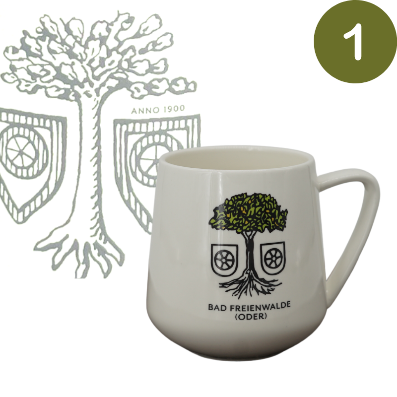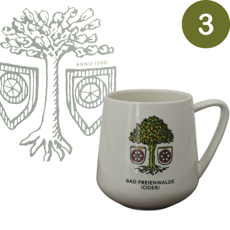 Die neuen Bad Freienwalder Tassen kommen mit drei verschiedenen Bildern in Anlehnung an das Bad Freienwalder Stadtwappen daher. Die einzelnen Varianten erkennen Sie an der Nummer auf dem Bild.
